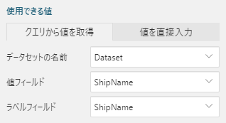 10. [使用できる値]セクションの[クエリから値を取得]タブをクリックし、プロパティを次のように設定します。