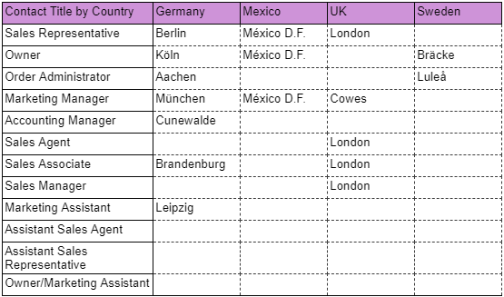 次のTablixデータ領域を使用して自動マージについて説明します。