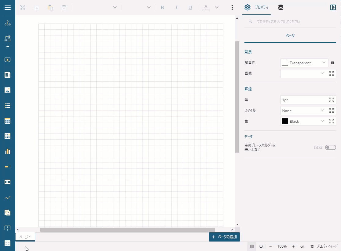 ページレポートを作成し、Containerコントロールをデザイン面上にドラッグ&ドロップします。