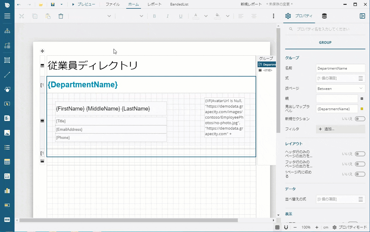 • [更新]ボタン:レポートを再描画し、更新された出力をプレビューします。