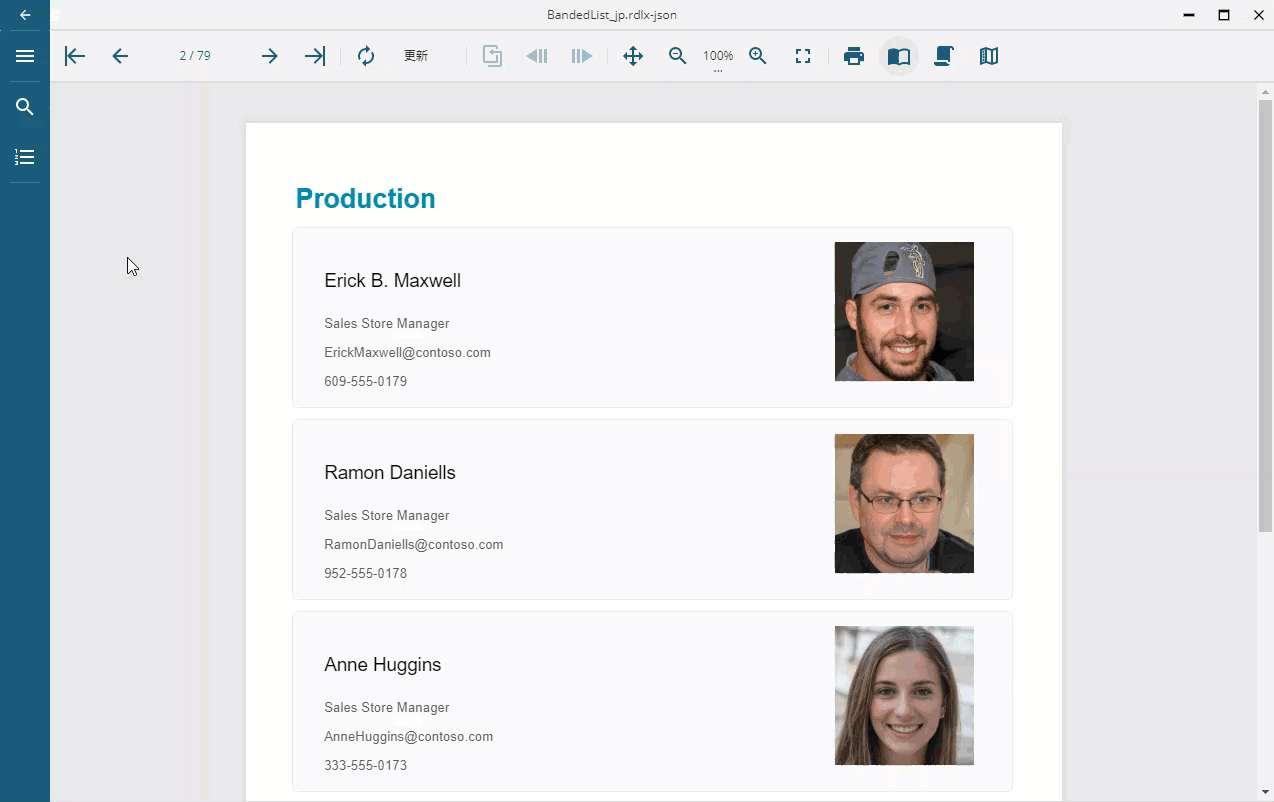 • [ゲラモード]:レポートを単一ページで表示されます。このモードは、RDLレポートにのみ適用できます。