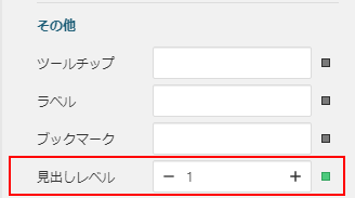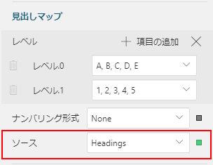 [+ 項目の追加]をクリックして、Level2(タイトルを表示する)を追加し、プロパティを次のように設定します。