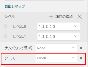 [エクスプローラ]をクリックし、レポートを選択します。[見出しマップ]セクションの[ソース]プロパティを「Labels」に設定します。