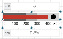 このグラフは、重要なデータの指標となるポインタを備えています。本コントロールを使用すると、単一の値、例えば年初来の収入を取り出すことができ、それをコントロールのプロパティで定義した目標値・最小値・最大値と比較することができます。