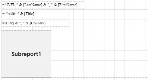 3. 詳細レポートをマスターレポートに埋め込むには、SubreportSubreport Toolbar IconコントロールをListコントロールにドラッグ&ドロップします。次の画像のように、各コントロールの位置を調整します。