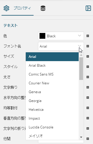 これにより、[フォント名]プロパティで使用可能なフォントのリストに、追加したフォントが表示され、レポートをデザインするために使用することができます。
