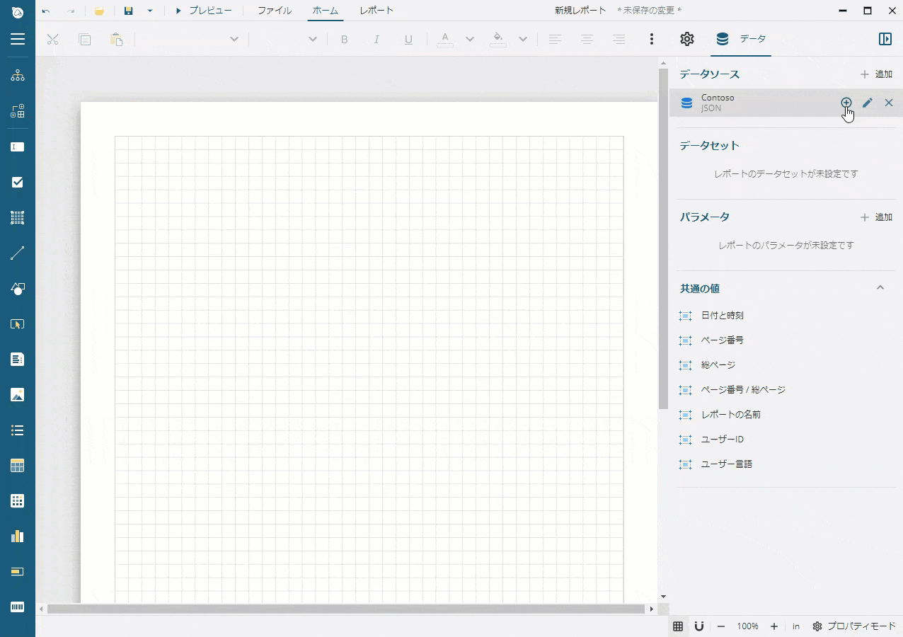 データ連結は、レポートと表示されるレポートのデータの間に接続を確立します。このチュートリアルでは、Contosoという架空の組織の販売データを含むGrapeCity Demo OData APIを使用します。